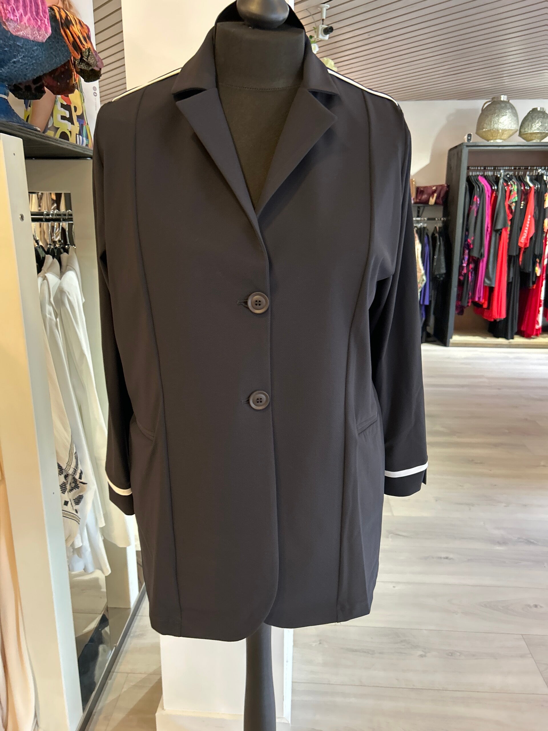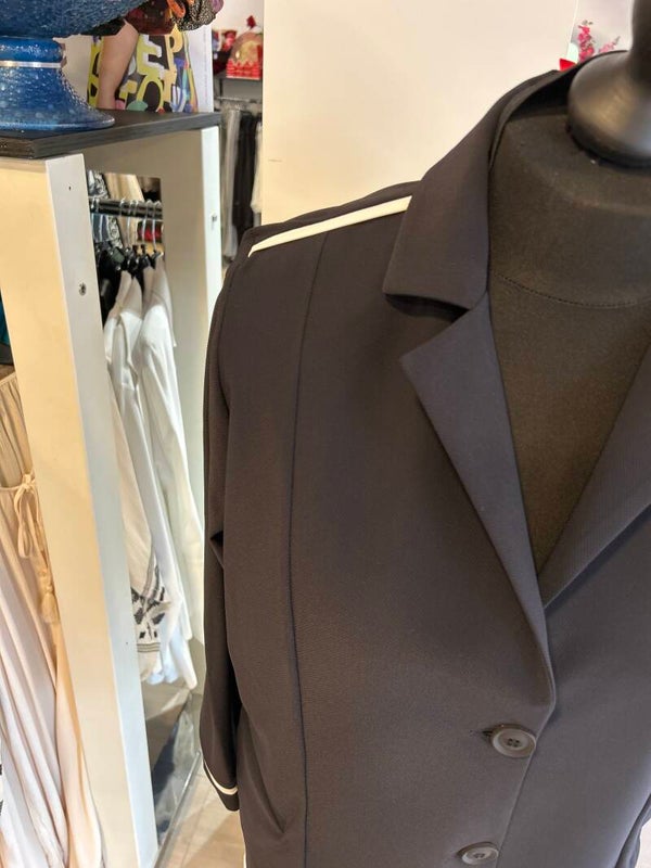Only M 011 Pique Zwart met piping wit Blazer 2 knoops